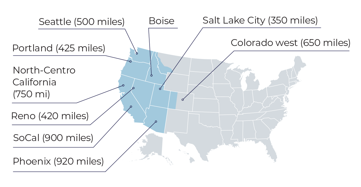 Capitol Distributing’s service area extends across nine states, including Washington, Oregon, Idaho, California, Nevada, Utah, Montana, Colorado, and Arizona. We are a top convenience supplier throughout the western United States. Whether you’re a convenience store, smoke shop, truck stop, neighborhood market, or other small retailer – we’d love to work with you!